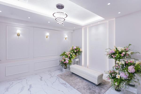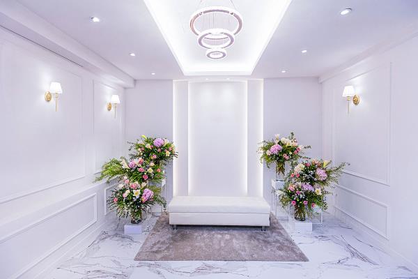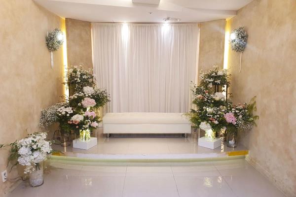 다른 웨딩공간 And More 아가페홀 Agape Hall 성스럽고 경건하게 연출하는 프라이빗 단독홀은은한 화사함이 묻어나는 아가페홀 그레이스홀 Grace Hall 모던한 감각과 클래식한 인테리어 깔끔하고 아름다운 연출이 어우러지는 우아한 매력을 지닌 그레이스홀 폐백실 Courtesy Room 양가의 예(禮)와 정성을 상징하는 폐백실은 단아하고 품위 있는 분위기의 여유로운 공간입니다. 뷰티샵 Beauty Shop 세련된 감각과 숙련된 노하우우아하게 아름다운 신부 연출자연스럽고 기품있게 표현합니다.